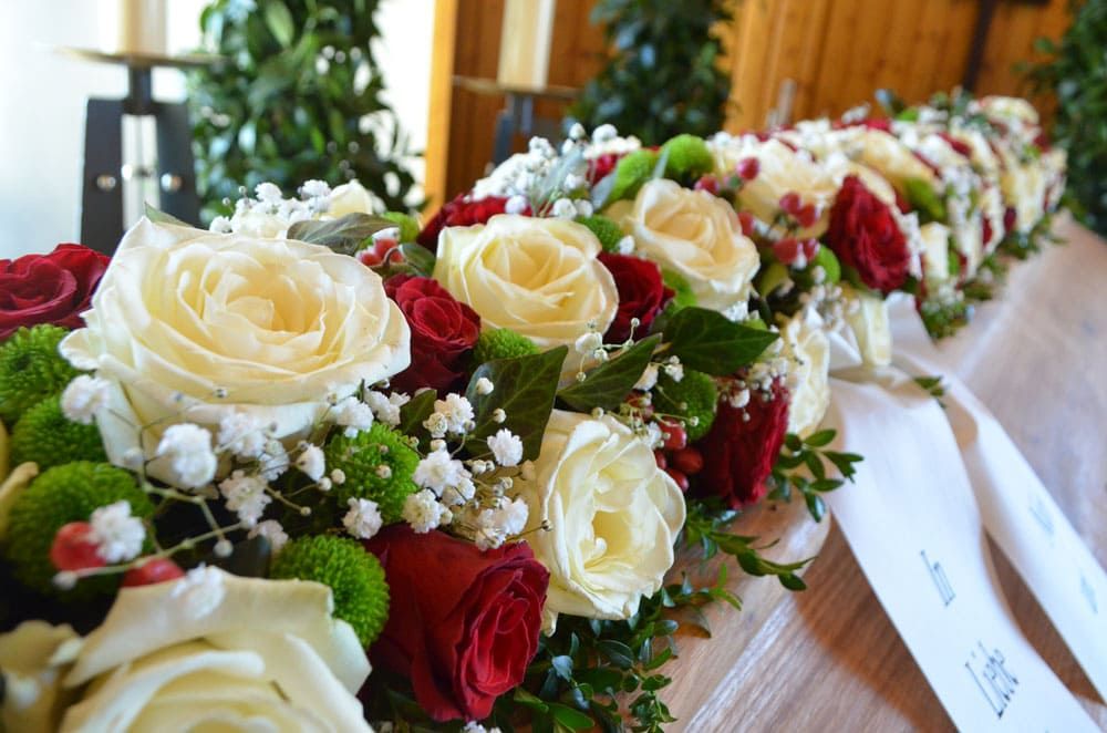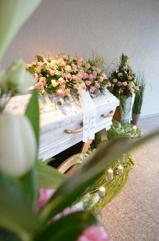 Der Sargschmuck ist ein wichtiges Element der Blumengestaltung einer Trauerfeier, um den Verstorbenen zu würdigen. Hinterbliebene können mit Auswahl und Farbgebung der Blumen Ihre Gefühle ausdrücken und eine bestimmte Stimmung während der Trauerfeier anregen.